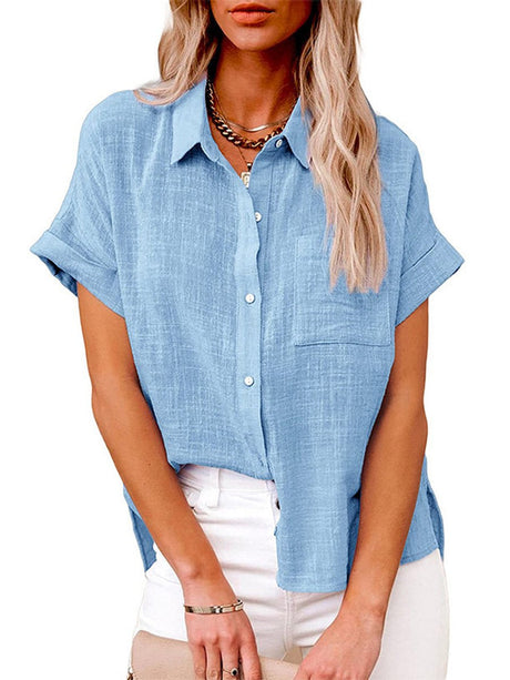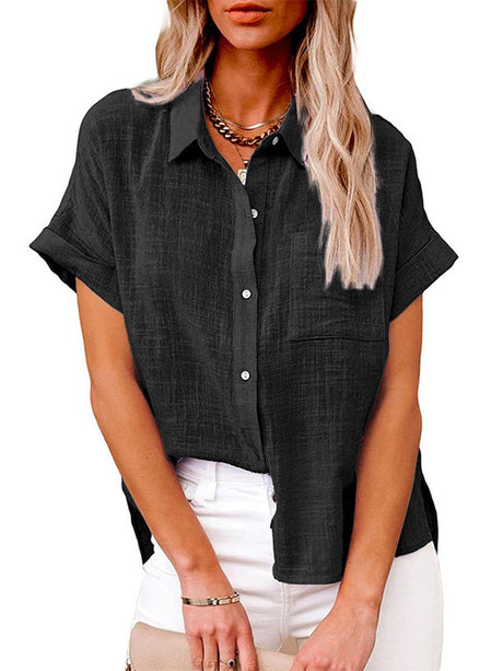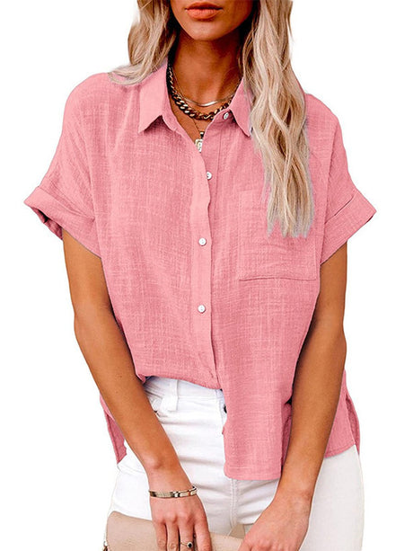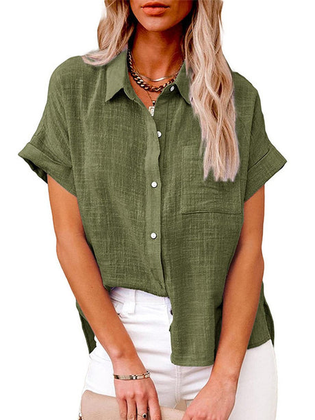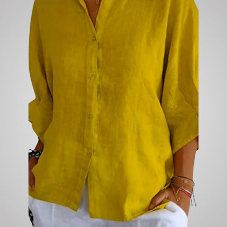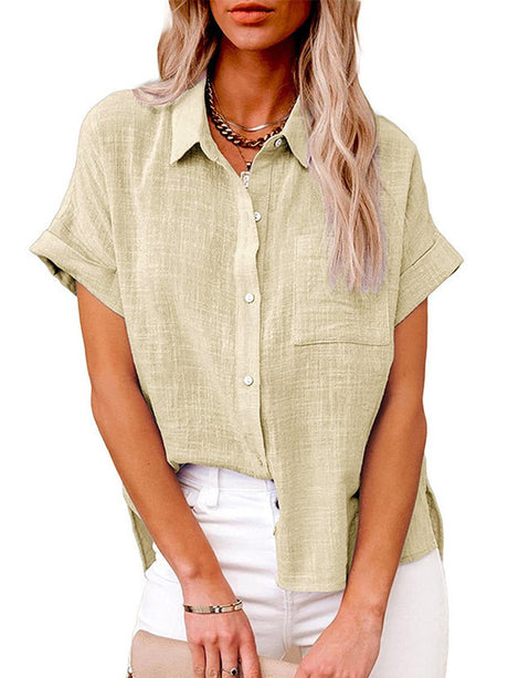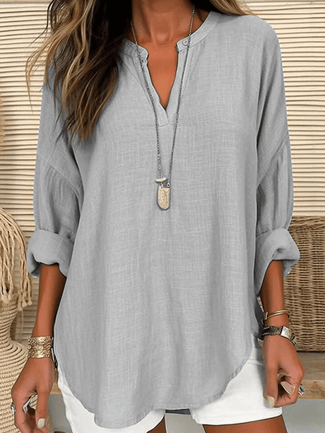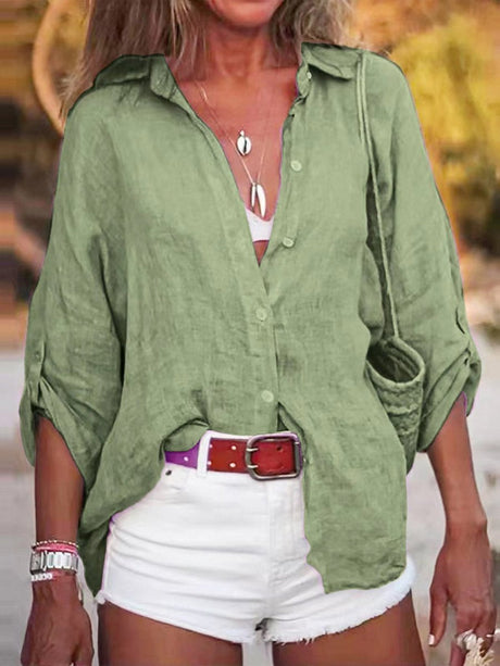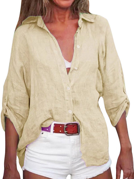 Women's Solid Color Cotton And Linen Loose Fit Shirt