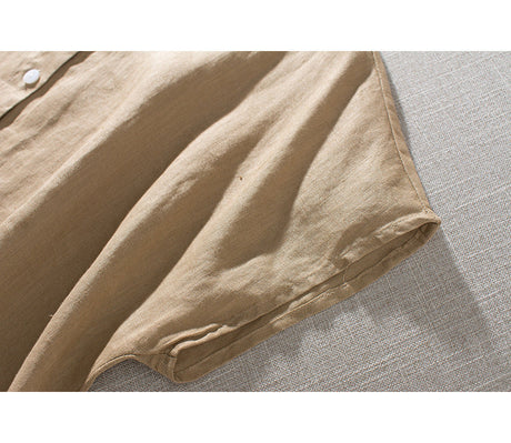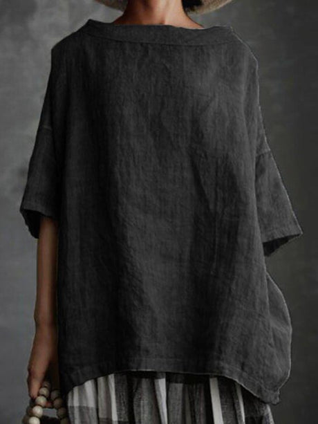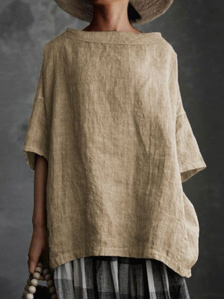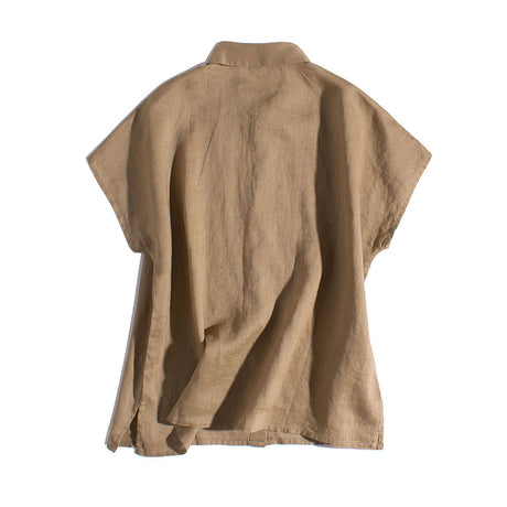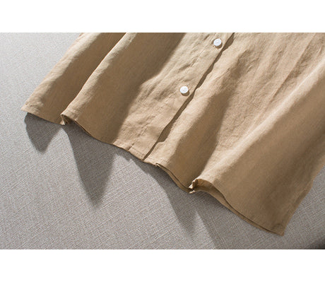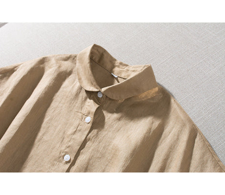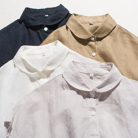 Ladies Cotton Linen Round Collar Loose Casual Shirt