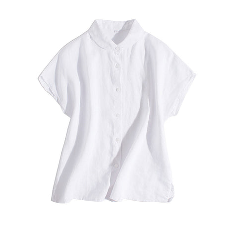Cotton Linen Loose Peter Pan Ruffles Neck Shirt