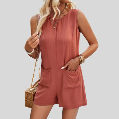 Gabriella - Sleeveless monochrome jumpsuit shorts with pockets