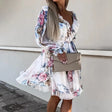 Amelia - Deep V-neck chiffon dress with floral pattern