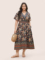 Bandana Print Shirred Overlap Collar Flutter Sleeve Dress