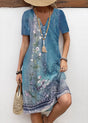 Button Floral Print Blue A Line Split Neck Dress - Blue / S is backordered and will ship as soon as it is back in stock.