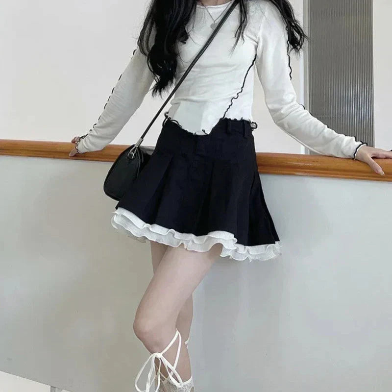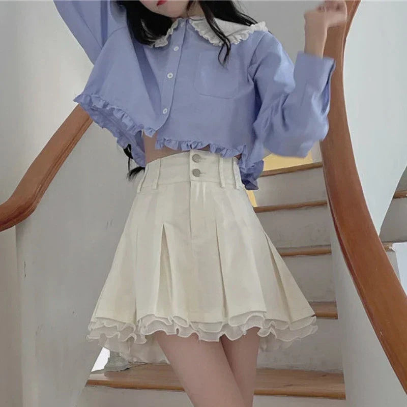 This stylish mini skirt combines delightful Japanese flair with South Korean sophistication, perfect for the modern woman who wants to spice up her wardrobe with a pinch of charm.
