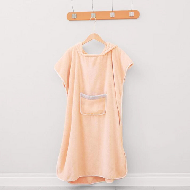 No need to hang it out to dry for a long time, because when this bath robe gets soaked, you just have to wring the water out, hang it up, then by the time of your next bath, it's all good to go!
