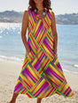 Women's Rainbow Striped Squares Printing Pocket Pinafore Linen Dress