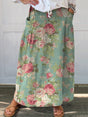 Women's Retro Floral Art Print Linen Pocket Skirt