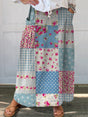 Women's Retro Floral Patchwork Art Linen Pocket Skirt