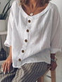 Women's Solid Color Loose Button Doll Collar Cotton Linen Top