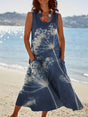 Womens Dandelion Print On Blue Background Pocket Pinafore Linen Dress