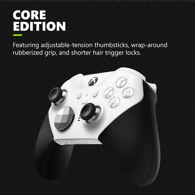 - WHAT'S IN THE BOX: Xbox Elite 2 Controller Core – White, USB-C cable, D-pad (1) and standard thumbsticks (2), Thumbstick-adjustment tool